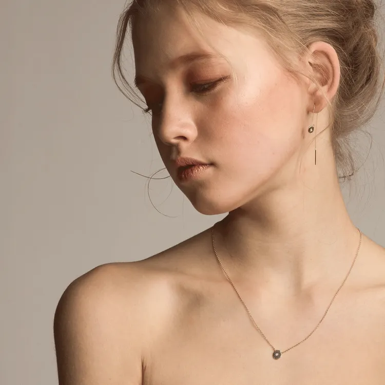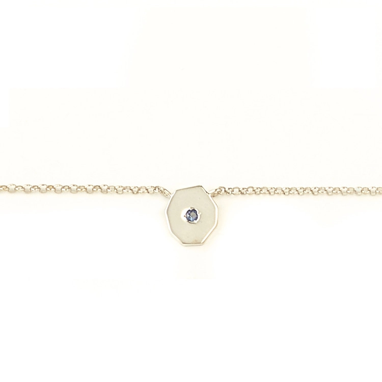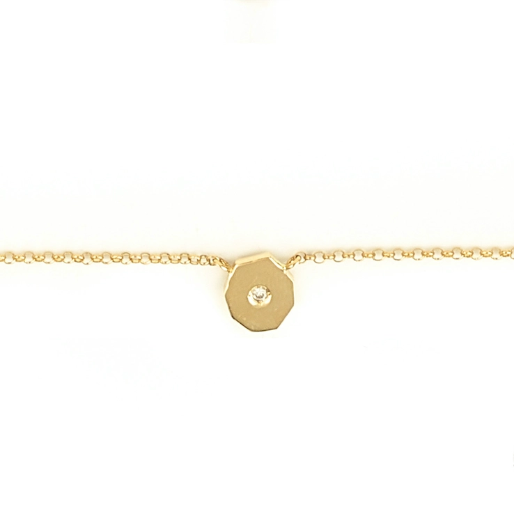 헵타곤 모양의 면에 한 개의 화이트 다이아몬드가 세팅된 목걸이 입니다.