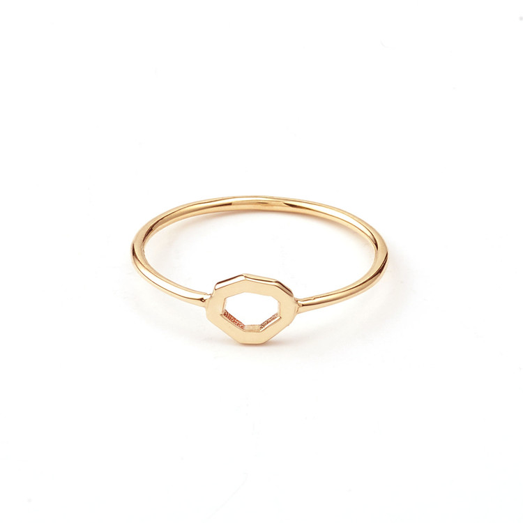 헵타곤 라인 형태의 밴드반지 입니다.두 가지 사이즈로 나오며 사진은 작은 사이즈의 헵타곤 반지입니다. 옐로우골드와 화이트 골드로 레이어링 하거나 사이즈를 믹스매치 하기 좋은 반지 입니다.
