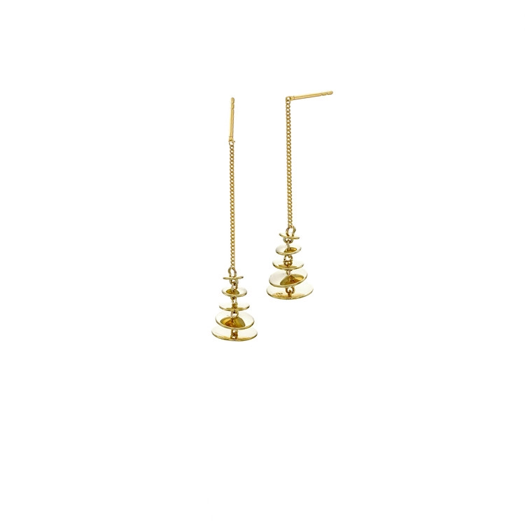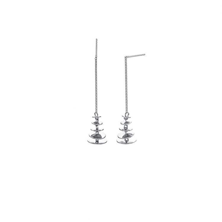 4mm, 5mm, 6mm, 7.5mm, 8.5mm 동그라미들이 연결됬습니다. 두깨는 보통 로고 두깨인 1mm 보다 약간 얇게 제작되어 세심하고 정교하게 제작됩니다. 실 귀걸이로 뒷침으로 길이 조절을 자유롭게하여 착용합니다.